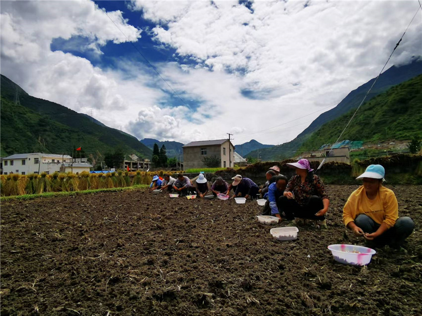 瀘定河壩村群眾在搶收水稻和播種