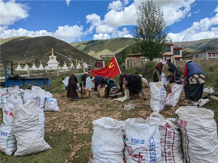 “現在黨的政策好啊,我們的種子都是國家發的,還有農技員指導種植,現在土豆畝產基本都在4000斤左右,相比傳統自己留種,產量大幅提升。以前我們都是自給自足,現在留夠口糧還能將多余的土豆拿到市場上銷售。我們木拉的土豆口感、品質都是最好,在市場上很暢銷,價格都在2元一斤以上,共產黨嘎真切(藏語:謝謝的意思)。”看著滿滿一袋的土豆,村民丁真降措擦了擦額頭的汗高興地說。