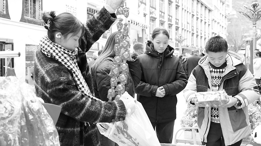 一進入臘月,年的味道越來越濃,丹巴縣家家戶戶采辦年貨的熱情也逐漸高漲,所有商店和集貿市場人頭攢動,開始熱鬧起來。人們忙著選購各種商品,迎接新年的到來。