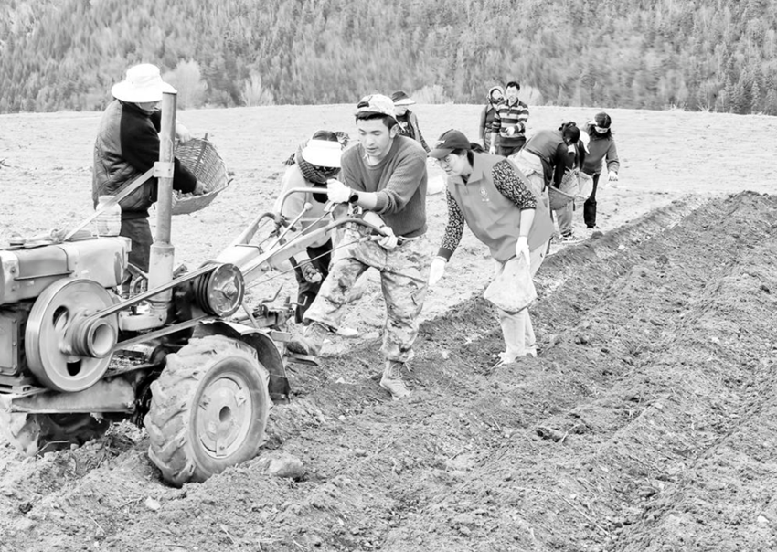 志愿者們認真領會播種要領,深入田地,依次排開,相互配合著耕地、播種、施肥。增德村監測戶鄭呷感激地說:“太感謝鄉里的干部了,我們家就2人,勞動力只有我一個,以前家里的地至少要一周才能種完,這次有你們幫忙,用一天的時間就種完了。”