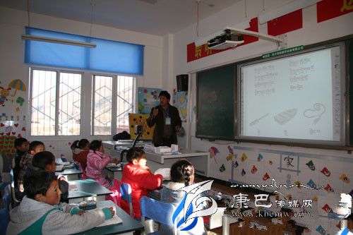 四川省甘孜州爐霍縣仁達鄉中心校教師正在利用多媒體教學。 李益眾 攝