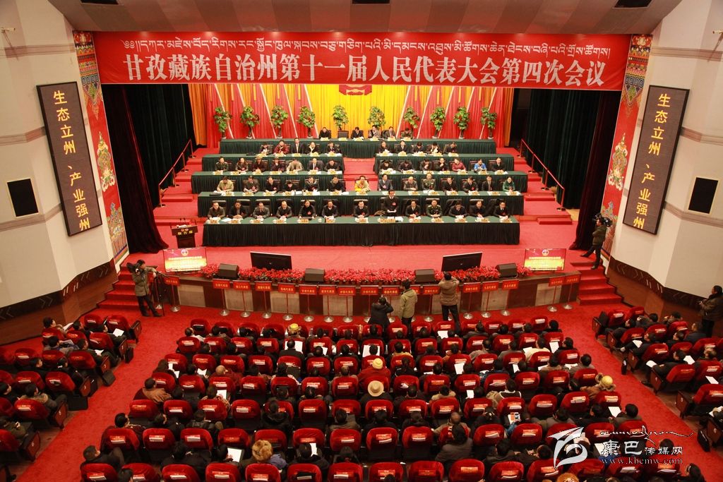 10時整,大會正式開幕,雄壯的國歌聲在康定劇場里響起。州人大主任李康宣布大會開幕,州長益西達瓦代表州政府向大會作政府工作報告。