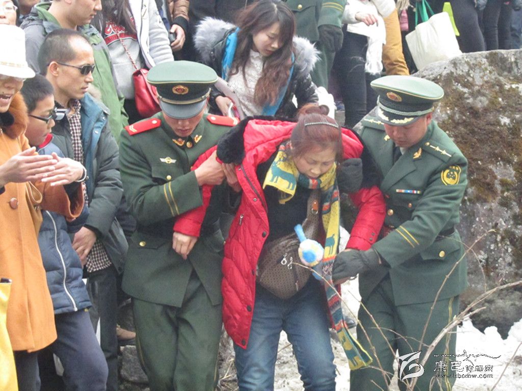 春節期間,擔負海螺溝景區執勤官兵服務身體不適的游客。
