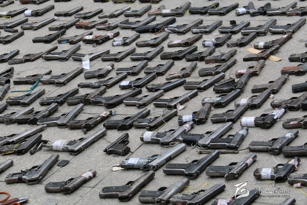 據介紹,從2011年至今,全州公安機關共收繳各類槍支3410支,(其中:2011年147支,2012年835支,2013年453支,2014年628支,2015年1至7月1347支);收繳各類子彈133207發,(其中:2011年52894發,2012年1332發,2013年7099發,2014年10586發,2015年61296);收繳炸藥18002公斤,雷管182566枚,導火線29911米,收繳各類管制刀具2521把,破獲涉槍涉爆案件998起,抓獲犯罪嫌疑人1001人。