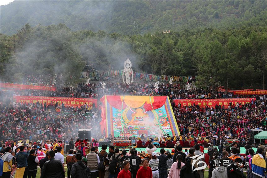 上午九時許,在陣陣法號和僧侶的誦經聲中,莊嚴、隆重的“四月八”曬佛儀式拉開了跑馬山國際轉山會系列活動的序幕。在人們的熱切期待中,釋迦牟尼的巨型唐卡畫緩緩展現在人們眼前。此時,來自不同省份和地區以及外國友人,早已將數碼相機或手機準備好,拍下美好的瞬間。來自河南的游客黃先生說:“能參加到康定‘四月八’轉山會,真是太有福了,這是多年的夢想,今天終于實現了。特別看到這幅釋迦牟尼唐卡像,真是壯觀,很震撼。”同樣,來自英國游客也被濃烈的儀式氣氛所感染,手中的相機就沒停下過,并用流利中文說:“節日舉辦得很好,不僅山美、水美,且民族文化底蘊無窮,真是太棒了。”