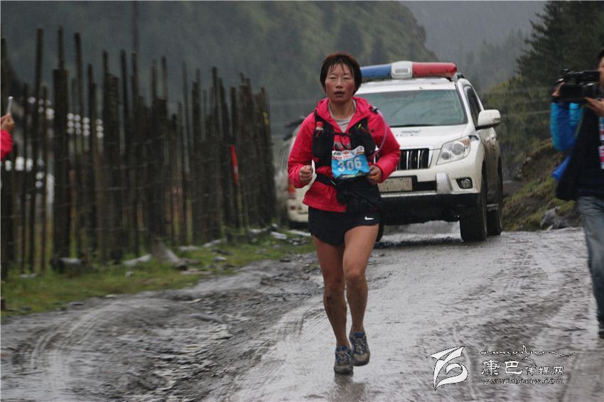 參加中國·甘孜環貢嘎山國際百公里戶外運動挑戰賽選手向終點沖刺。
