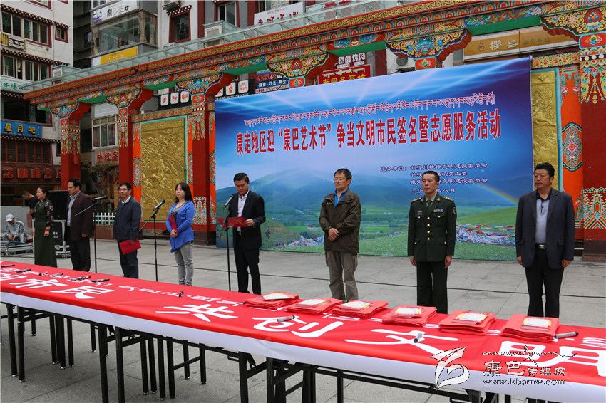 活動中還發出了“喜迎康巴藝術節、共創文明新風尚、展示康定新形象”的倡議書和宣傳單。