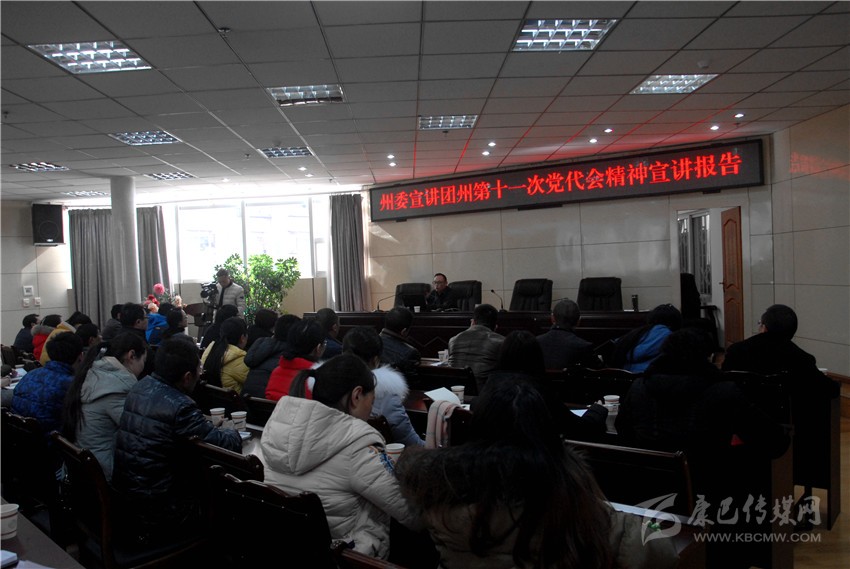 徐杰通過PPT的形式,圖文并茂的從全面了解州第十一次黨代會的主題、主要成果和起草過程,準確認識過去五年工作的成績經驗,深刻把握州第十一次黨代會對當前形勢的分析、五年工作的指導思想和奮斗目標,精確把握和全面落實未來五年全州經濟社會發展任務,堅持全面從嚴治黨、不斷夯實黨的執政根基五個方面,以詳實的數據、生動的畫面、平實的語言,提綱挈領、深入淺出地講解了州第十一次黨代會精神。