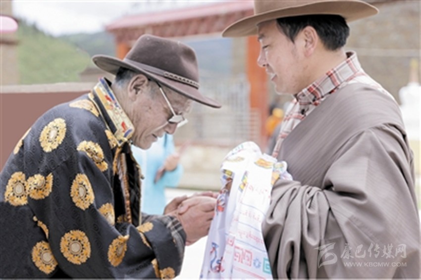 群眾為宣講員獻上潔白的哈達。