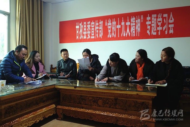 本網訊 (則瑪拉姆 文/圖)連日來,甘孜縣依托中心組、干部講堂、“三級三講”等學教平臺,圍繞“黨的十九大精神、《中國共產黨章程(修正案)》、習近平新時代中國特色社會主義思想、決勝全面建成小康社會”四大專題開展學習,采取專家輔導講、專題研討學、集中考學評等形式,迅速組織廣大黨員干部原原本本學、聯系實際學、突出重點學,切實把黨的十九大精神轉化為謀劃發展的思路、促進發展的舉措、領導發展的能力和推進發展的合力。圖為11月6日下午,縣委宣傳部組織全體職工專題學習黨的十九大精神。