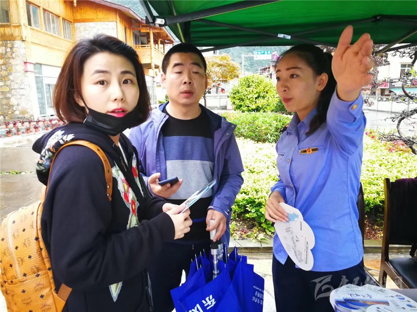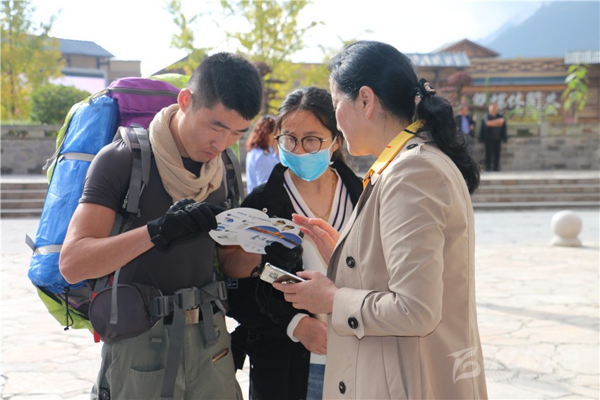 去年國慶期間,工商局工作人員向來州游客介紹我州“雙心”創建工作。