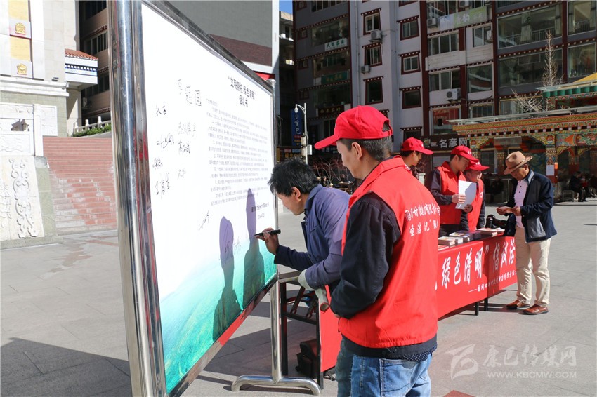 當(dāng)天陽光明媚,高寒的康定也有了春天的氣息,“圣潔尚巴”服務(wù)隊(duì)的四名隊(duì)員身穿整齊的隊(duì)服來到情歌廣場,宣傳文明祭祀,預(yù)防山火。廣場中間一塊大大的簽名墻吸引了市民的注意,墻上寫著“文明祭祀 綠色清明倡議書”幾個大字,文明祭祀、科學(xué)祭祀、環(huán)保祭祀、節(jié)儉祭祀、安全祭祀幾條倡議中為大家提供了多種多樣的祭祀方式,獻(xiàn)一束花、植一棵樹、寫一封信、扎一根黃絲帶……參與活動的市民紛紛在墻上鄭重地簽下了自己的名字,“我覺得這個活動很好,祭奠的方式有很多,不一定非要燒紙錢、放鞭炮。”市民李連國說道。