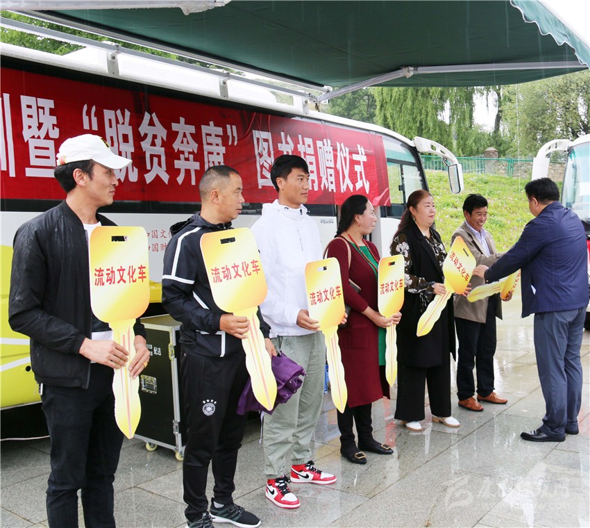 本網(wǎng)訊(記者 宋志勇 文/圖)7月2日,我州文化扶貧——流動(dòng)文化車(chē)發(fā)放、培訓(xùn)暨“脫貧奔康”圖書(shū)捐贈(zèng)儀式在州博物館舉行,向各縣(市)及海螺溝管理局、州歌舞團(tuán)統(tǒng)一配送流動(dòng)文化車(chē)共20輛,價(jià)值400萬(wàn)元。并捐贈(zèng)了一批包括本土作家作品在內(nèi)的優(yōu)秀圖書(shū)共計(jì)7000冊(cè),價(jià)值16余萬(wàn)元。