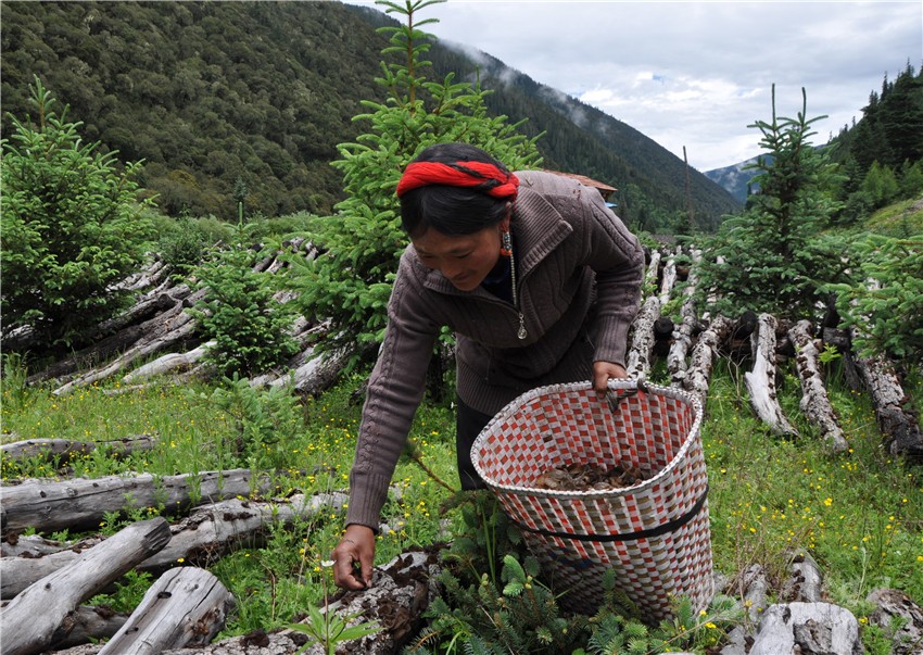 理塘縣下木拉鄉上馬巖村村民采摘黑木耳。