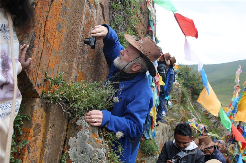 專(zhuān)家學(xué)者考察石渠巖畫(huà)。