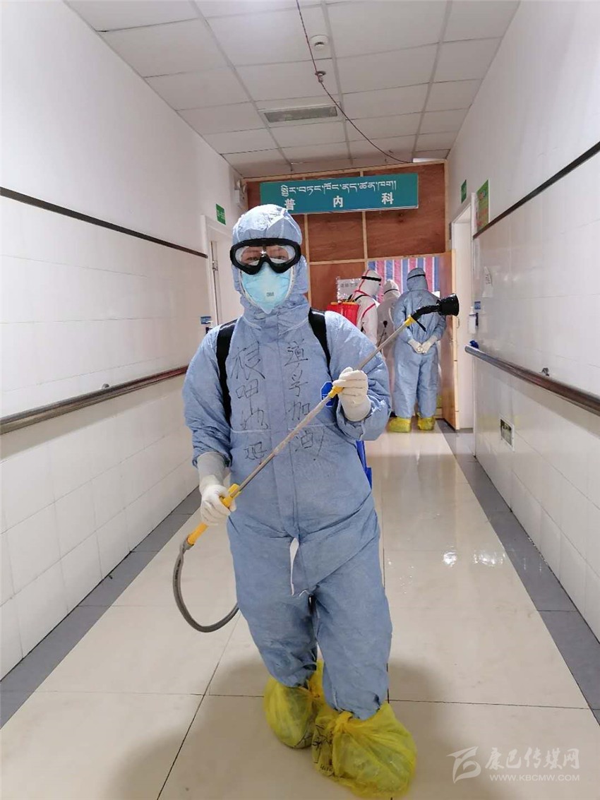 除了日常護理,根呷她姆的還要負責每日病房的消毒工作、垃圾清理以及清潔衛生工作。“消毒工作格外重要,必須做到不漏一個死角。”根呷她姆強忍著84消毒液刺激引起的嗆咳及生活垃圾引起的惡心發嘔,一絲不茍,任勞任怨,做好每一天的消殺清潔工作,讓病毒無處遁形。在同事面前她是護士長、家長,在病人面前,她是護士、護工、清潔工、家屬、心理老師……根呷她姆每天在各種角色間轉換自如,不怕臟、不怕累、不怕苦,拼盡全力只為打贏這場沒用硝煙的戰爭!