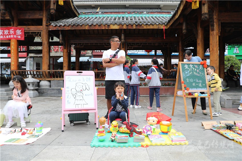 “這個玩具1元錢賣不賣?”“已經很便宜啦!最低3元錢。”5月31日,瀘定橋廣場人流涌動、熱鬧非凡,叫賣聲不絕于耳,不少“小顧客”在各個攤位之間,認真地挑選自己心儀的商品,有模有樣地討價還價,廣場變成了熱鬧的自由貿易市場。