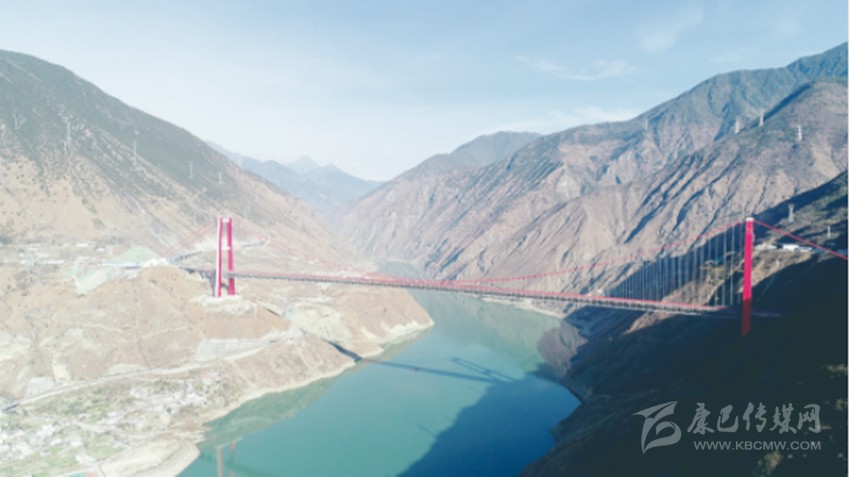 此時此刻,距眼前這座“四川第一大”單跨鋼桁梁公路懸索橋約4千米的更高位置處,一座主跨1060米的“世界跨度最大山區鐵路懸索橋”正呈“一日千里”之勢。
