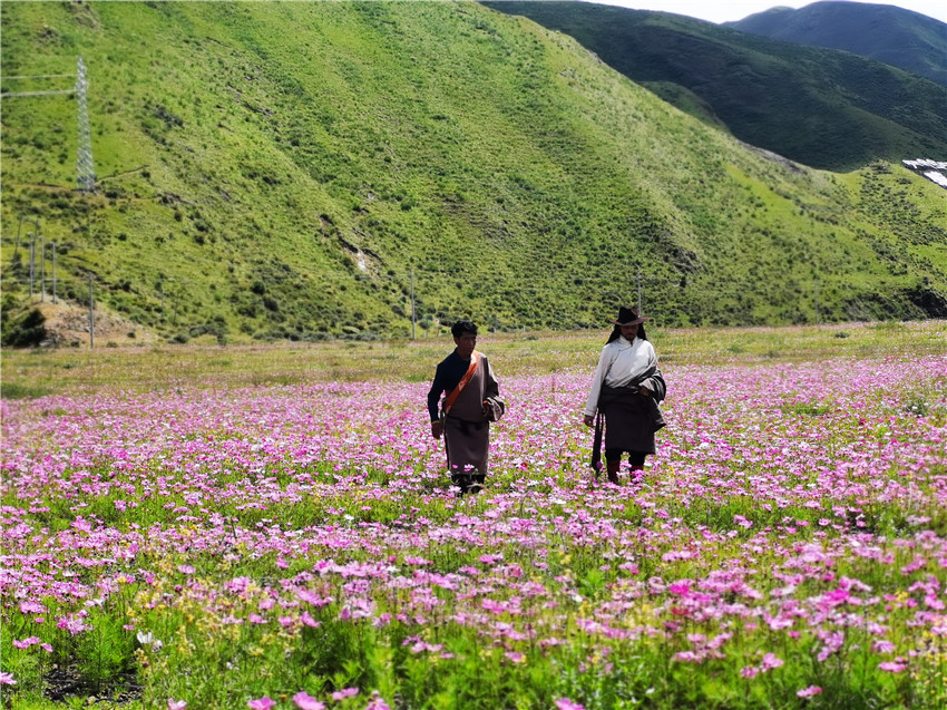 溫江援建的洛若金礦修復工程(人工飼草基地),使曾經的荒地變身花海。