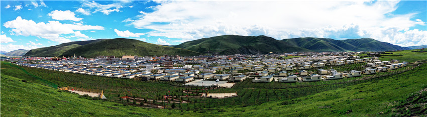 色達縣全境海拔大都在4000米以上,長冬無夏,年平均溫度-5℃,大氣含氧量不及低海拔地區的60%。為改善貧困群眾的生活條件,2017年,色達縣啟動了易地扶貧搬遷集中安置,對口幫扶的溫江區投入資金4775萬元,又專門追加320萬元用于社區及周邊環境綠化。