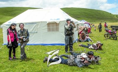 位于宗塔草原“大盆地”東邊山坡的降巴牧場在隊員們的心里也留下了深刻的印記。15日早上5點半隊員們就出發上了降巴牧場。朝霞映紅了天邊,紅云罩著青草牛糞味飄香的草坡。比采風隊員們起得更早的牧人已擠完了牛奶,一個僅10 歲的女孩正在草坡上拾牛糞;牛毛帳篷里,勤勞的牧婦已打開了牛奶分離器開始分離酥油了……一問,方知牧民們今晨4點就起床勞作,干完早上的活兒,他們要趕到三公里遠的“盆地”耍壩子,看賽馬。這個牧場靜謐潔凈得令人稱奇,青青的草坡上絕少有垃圾存留,沒見到一只兇惡的牧犬;按季節劃分的草場由整潔的網圍欄圈開,分隔有致;牧人舉家出門,連帳篷門也不掩,據說這里沒有偷盜發生,家人和諧;古老、平和的氣氛中,晨風輕拂,野花青草搖曳,輕柔的晨霧中偶而傳來兩聲牛哞,讓人頓感心靜如水。對于長期居住城市的人來說,這里無疑是“幽雅天堂”了。