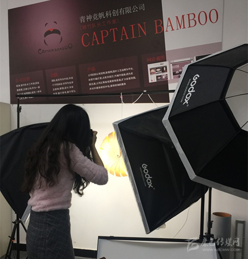 在青神,電商服務中心工作人員正在拍攝電商產品。