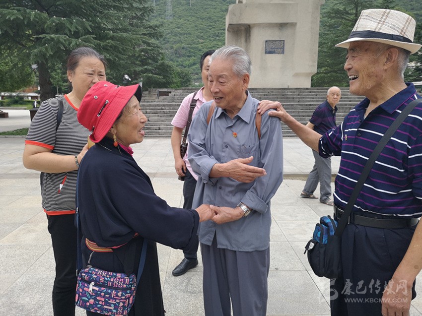 “哎呦,聶校長,我們快40年沒有見面了吧,沒想到在這里碰到了,您瘦了,白頭發增多了,其他沒變,還是像我的父親一樣,您一定要保重身體,我祝福您長命百歲。”在瀘定橋廣場上,今年60余歲,雅江籍退休人員劉桂英緊緊握住離休干部聶庭梅的手,激動不已。