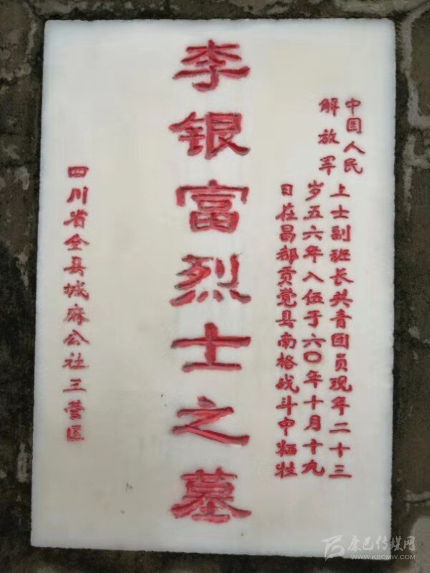 1937年出生在雅安市天全縣的李銀富,在19歲那年加入中國人民解放軍,4年后在平叛戰斗中犧牲。撇下家中的寡母和兩個幼子,李銀富長眠在他曾戰斗過的雪域高原。
