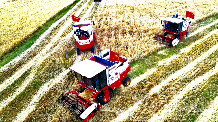 機械化收割青稞。