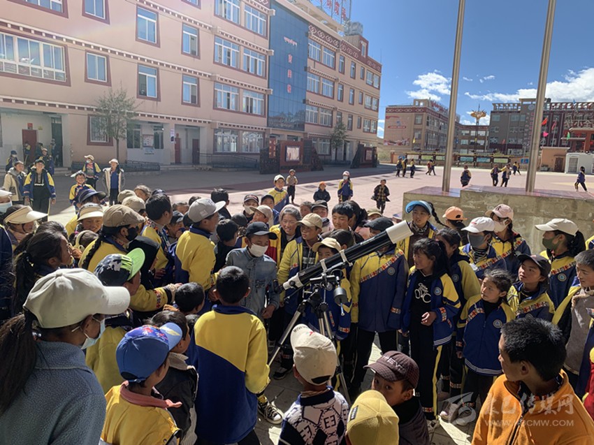 理塘縣第四完全小學是個牧區寄宿制學校,這也為孩子們夜晚觀測星空創造了機會。“天文社社員每周有兩次利用天文望遠鏡觀測的機會。”王建煜說,每次社員們在觀測時,后面總會跟來一群低年級的學生。