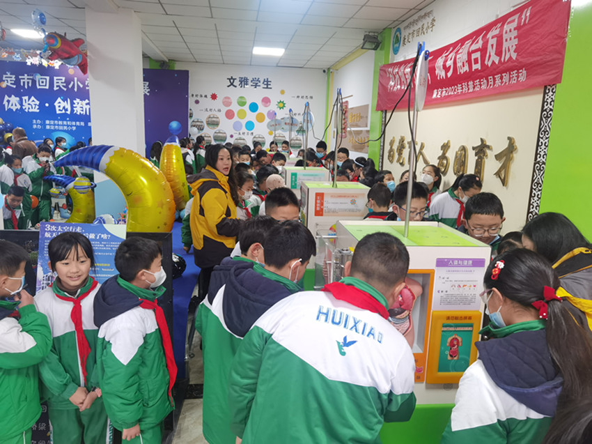 這是回民小學第三屆校園科技節活動上的精彩一幕,每年的科技節都是該校全體師生翹首以盼的“重頭戲”。今年的科技節以“逐夢九天,強國有我”為主題,由康定市教體局、康定市科協主辦,回民小學承辦,希望學生們能夠在科技實踐、體驗和創新中把握未來。