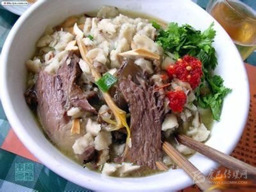 牛羊肉泡饃是回族特有的傳統風味美饌。它以選料嚴、烹制精、營養豐富,香醇味美而譽滿中外。