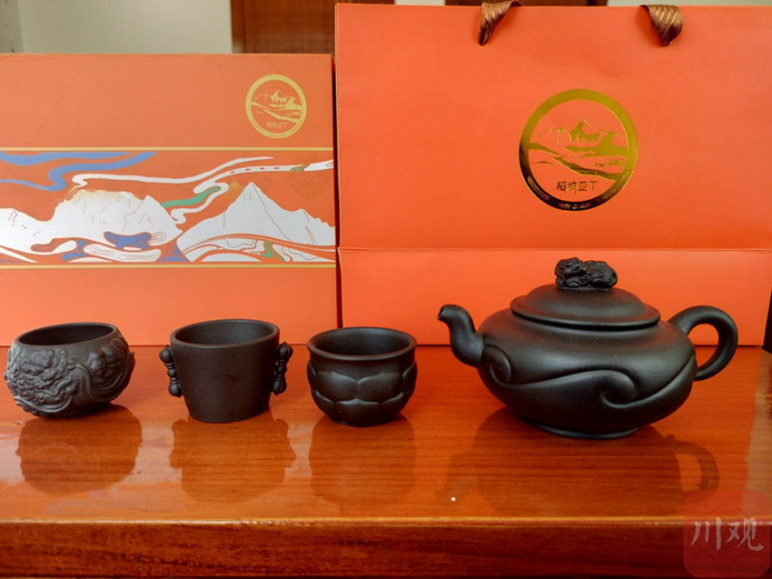 活動當天,該中心首批“亞丁”文創茶具也出窯亮相。此次出窯的“亞丁”文創茶具為央邁勇、仙乃日、夏諾多吉套壺。