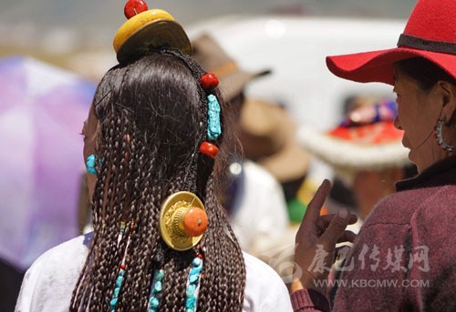 其實藏族人的審美很多同漢族不一樣,參加一場活動她們會在頭發上占去大量的時間,編成非常多的辮子。