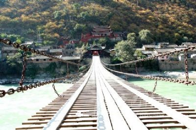 瀘定橋簡介瀘定橋坐落在瀘定縣城大渡河上,為全國重點文物保護單位。該橋始建于清康熙44年,建成于45年(1706年)。康熙御筆題定“瀘定橋”,并立御碑于橋頭。